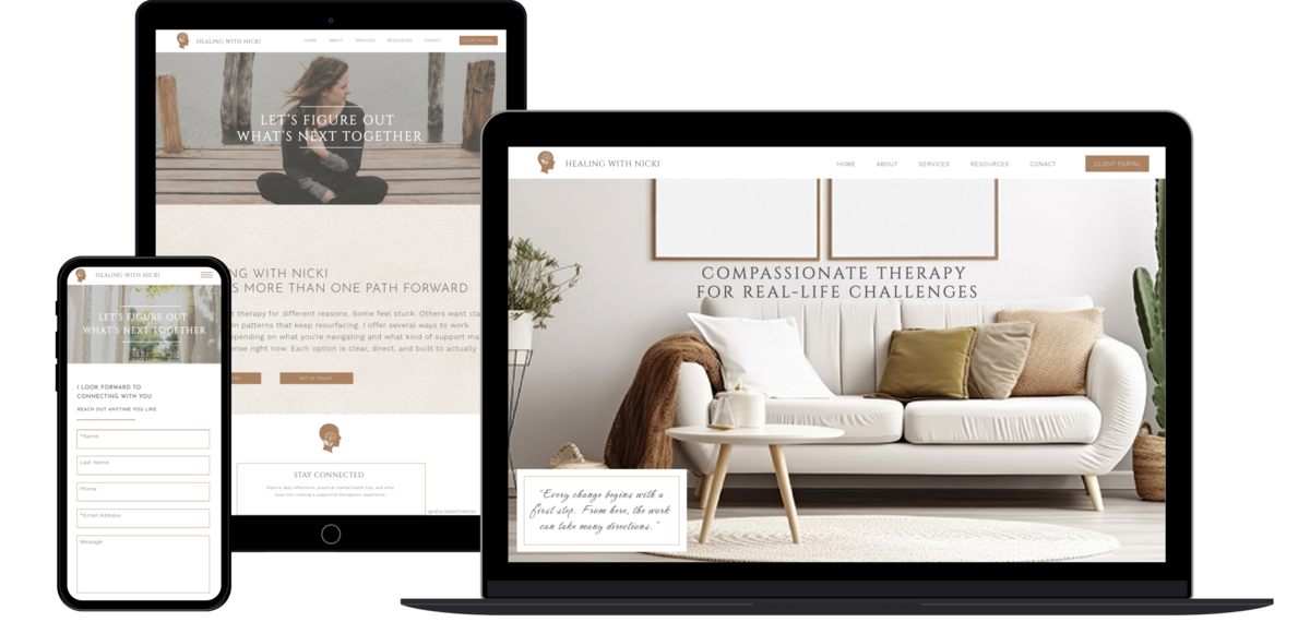 This project centered on building trust through design. Soft tones, nature-inspired elements, and thoughtful details shaped a site that reflects Nicki’s compassionate work as a therapist. The result is a welcoming experience that conveys warmth while maintaining clarity and professionalism.